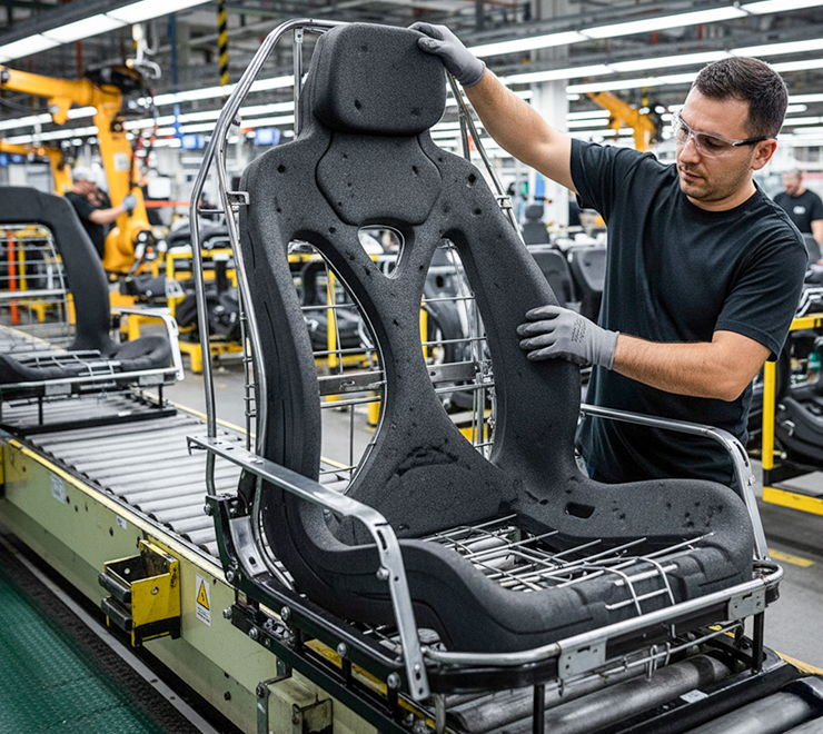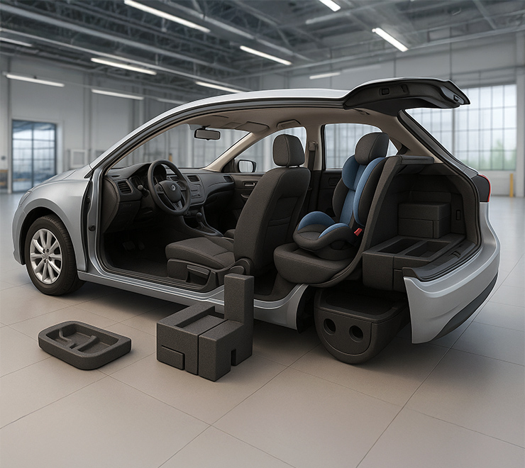السيارات (OEM & TIER1): حشوات المقاعد، الدعامات الجانبية، التعزيزات الداخلية للصدمات وحماية الوحدات الإلكترونية باستخدام EPP، تمتص الصدمات، تقلل الوزن وتحسن NVH (الاهتزاز/الصوت). تُظهر بيانات ARPRO النموذجية أن المادة توفر امتصاص طاقة ممتاز وفق معايير السيارات وتلبي معيار انتشار اللهب FMVSS 302. ميزة EPSA: مرونة الإنتاج المحلي وإدارة المتغيرات حسب المنصة.